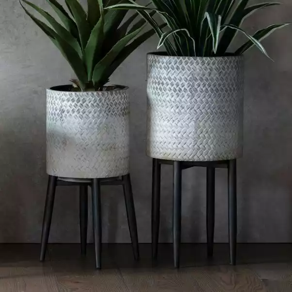 Display your favourite plants in this stylish and modern planter. The Colemans Metal Planter is beautifully crafted from metal with an off-white and charcoal finish, complete with four aged metal legs. This stunning planter is perfect for adding the finish touch to your living space or other areas of your home and is available in two sizes. Pair the two sizes together to create a gorgeous plant display in your home.