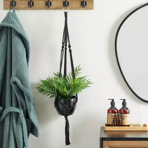 Dunelm Black Hanging Ceramic Pot With Macrame