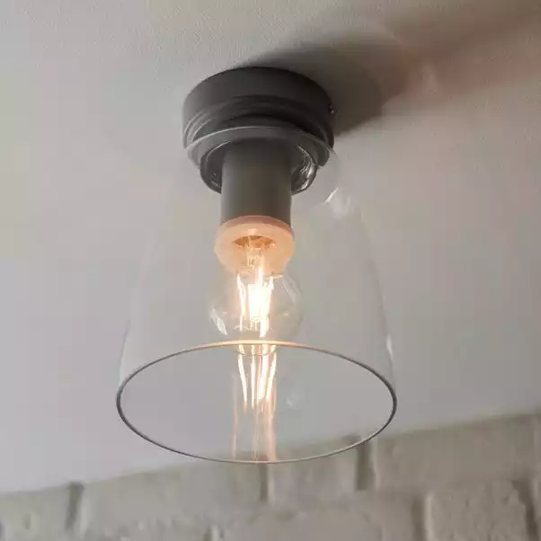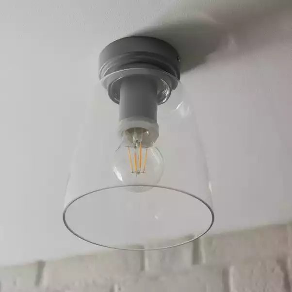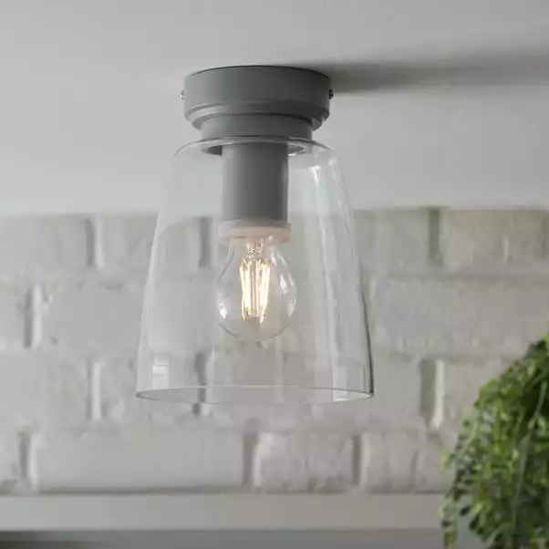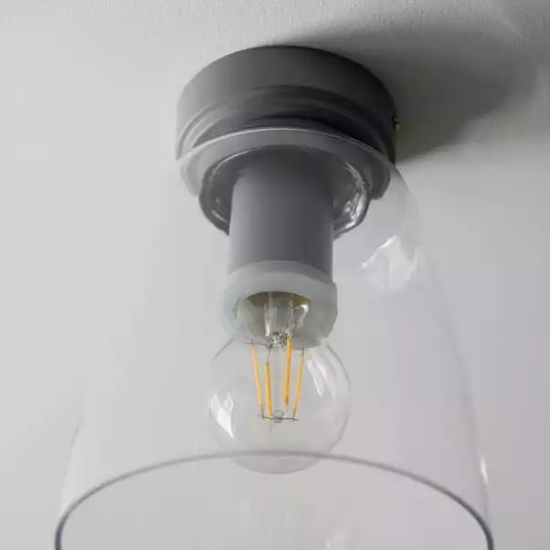 Featuring an understated, elegant design, the Hickory outdoor ceiling light is a great way to light your porch and other protected outdoor areas, or even your bathroom thanks to IP44 rating. This flush light fitting is finished in a stylish matt grey, complete with a clear glass shade, perfect for displaying a statement bulb. Matching items are also available to hlep you create a coordinated look.
