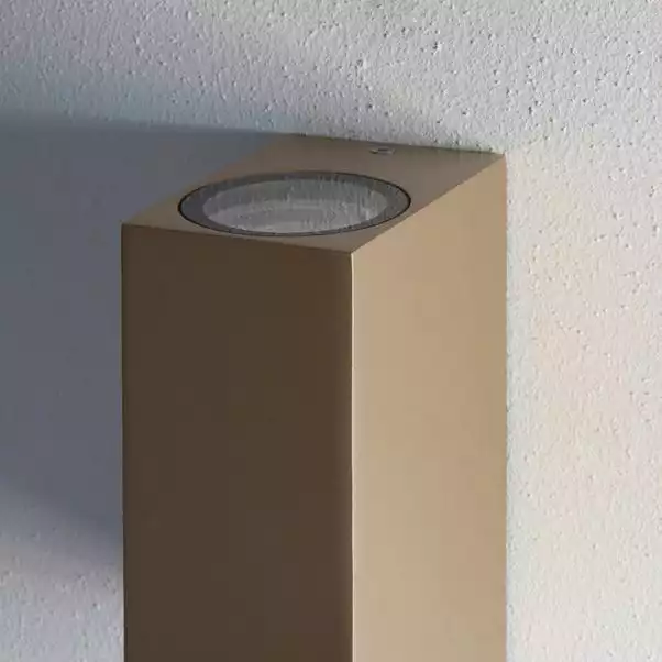 Featuring a modern and minimal design, the Lamont outdoor wall light is discreet and perfect for lighting up your outdoor spaces. Crafted from die cast aluminium alloy with a satin gold effect finish. The Lamont wall light has an IP44 rating, perfect for keeping your porch or patio lit through all seasons and available in a choice of stylish textured black and matt grey finishes.