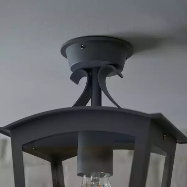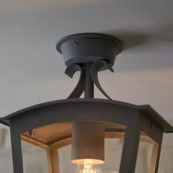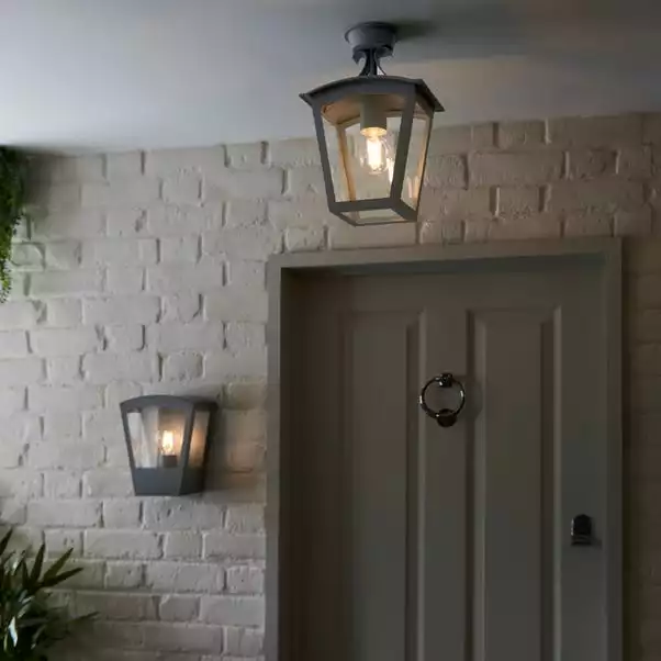 Offering a modern take on a traditional lantern design, the Leese outdoor porch fitting would bring a classy touch to your outdoor space. Boasting an IP44 rating, this timeless stainless steel ceiling fitting can be used outdoors or even in your bathroom, and features a choice of textured black or matt grey finishes. Matching items are also available making it easy to create a coordinated look.