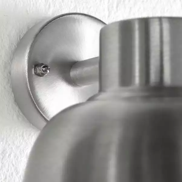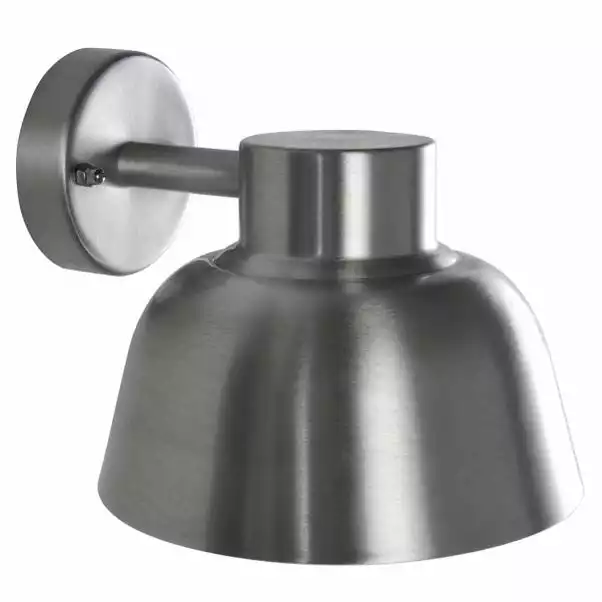 With its contemprary industrial inspired style, the Maxwell outdoor wall light is a great way to light up your outdoor space. This light fitting is Ip44 rated and features a stylish brushed steel finish for a modern look.