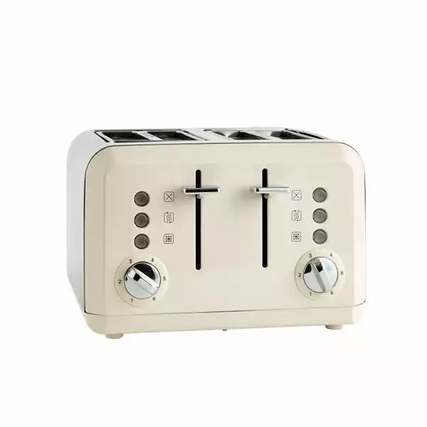Perfect for busy families, this toaster has a four slice capacity and has been crafted with a classic cream finish suitable to compliment all types of kitchen decor. Featuring variable width bread slots this toaster can toast many different types of bread suitable to cater to all family members needs while also featuring a high lift facility so that you can see the status of the bread and can lift out safely. This toaster boasts defrost functions for frozen bread, reheat functions for bread already toasted and a mid cycle cancel function making this toaster the appliance to have for a busy morning. The slide out crumb tray assists with quick and easy cleaning after every use and helps to prolong the life of this toaster.