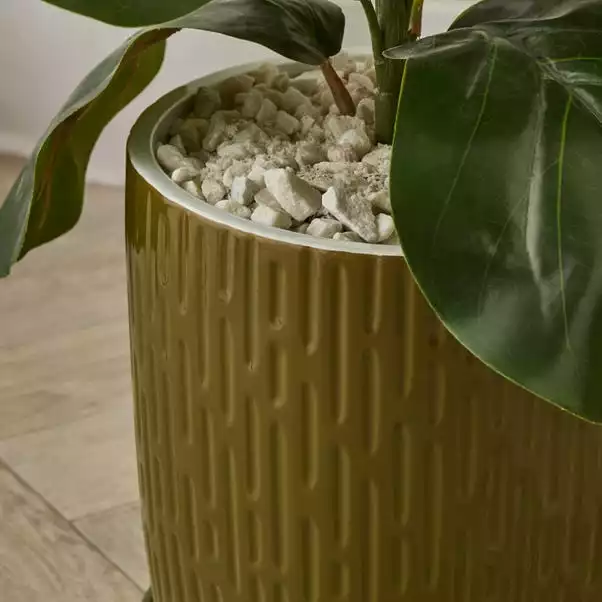 Featuring the Elements Sculpted Footed Planter with a saucer. This stylish piece made from high quality stoneware serves decorative value with its subtle repetitive pattern and practical, holding and supporting a thriving plant without any leakage. The modern green colourway will complement any area of the house as well as having easy wipe clean properties.
