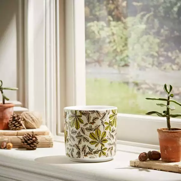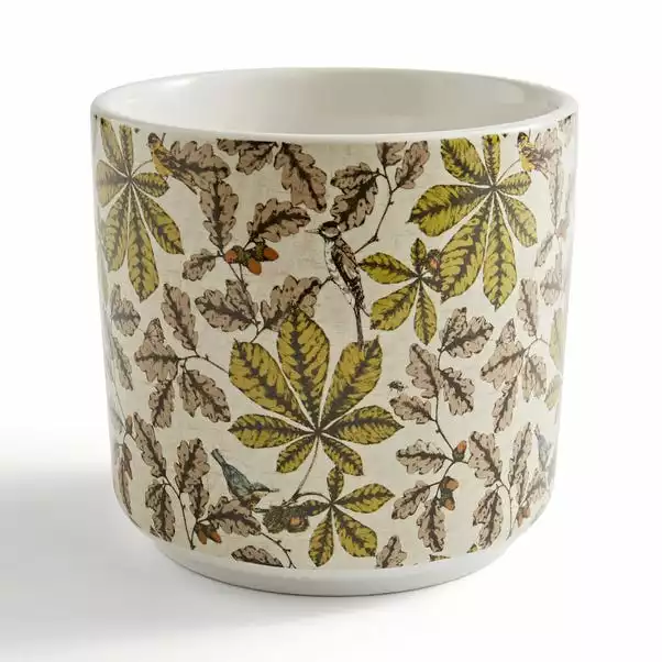 Plant a little bit of style in your home. With this stoneware plant pot, you can give your plants a stylish home that is as unique as their nature. Crafted from pure ceramic and finished with a Woodland design, this will look great on any windowsill or tabletop.