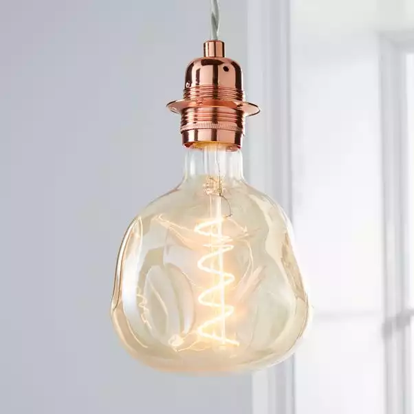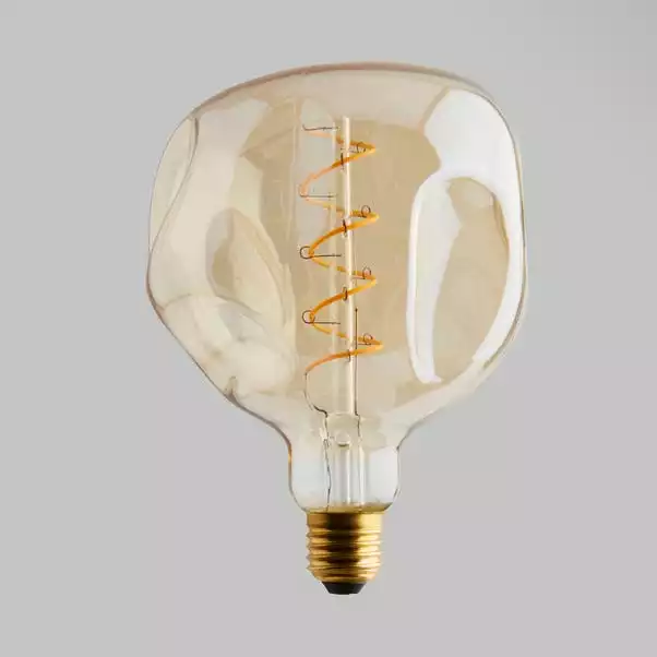 The Status Dimmable LED Bulb is a low energy efficient spiral filament that has an antique amber effect that helps create a unique ambiance in your living space. This bulb also features a bumpy, even glass surface design for a unique appearance and has 6.5 watts of power with a lumens output of 350 and lasts up to 10,000 hours.