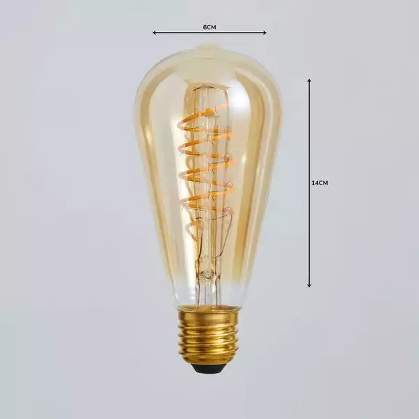 Made with clear glass, complete with a fun spiral filament, this highly efficient 4 watt LED filament bulb features an edison screw cap fitting and lasts up to 15,000 hours, providing instant warm white light at the flick of a switch.