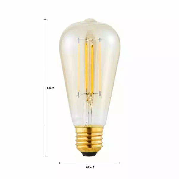 This extra warm white bulb has an amber colourway for a distinctive look that will complement an array of home decors. Not only is it a decorative feature light bulb, but it also has low energy consumption and is dimmable, making it both practical and ideal for mood lighting.