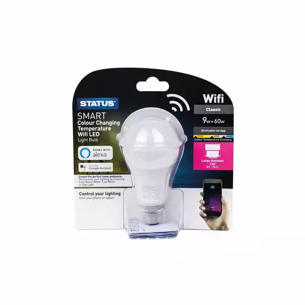 Fully compatible with Alexa and Google assistant, this wifi enabled smart bulb will bring your home into the 21st century. This highly efficient bulb is made with pearl glass and provides as much light as a 40 watt incandescent filament bulb. This smart bulb is also dimmable and features adjustable colour temperature settings, all the way from warm white to cool white and even daylight settings, making it perfect for any room in the house. Full details can be found at www.statussmart.com.