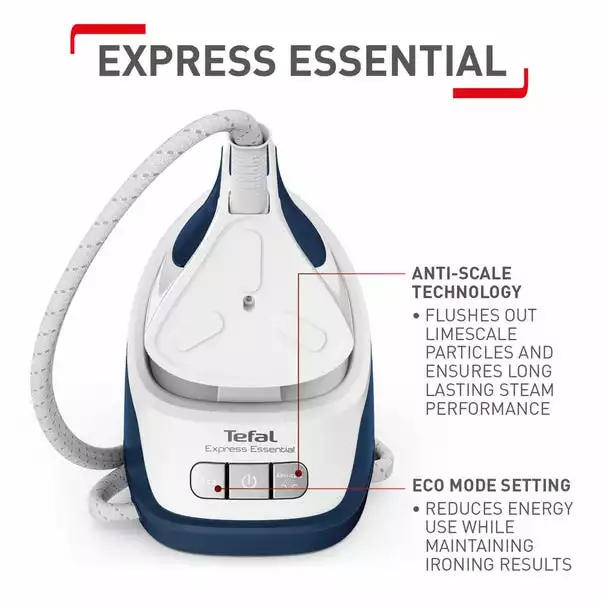 Cut up to 30 minutes off your ironing, with this fabulous Tefal steam generator. With 5.3 bars producing 120g/min continuous steam and a 270g/min boost, the Express Essential delivers great results in no time.