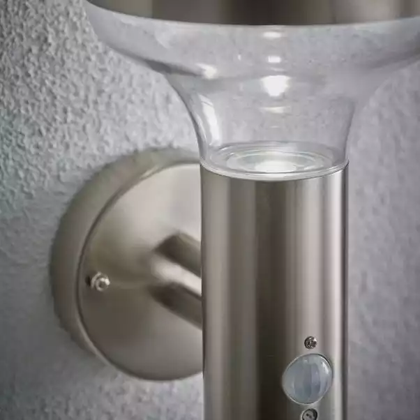 Illuminate your home with the delightfully striking looks of the Kenzo PIR Wall Light. Combining contemporary curves and sleek strong construction to outdoor lighting, the Kenzo lighting features a built in PIR sensor and timer function and an IP44 rating so it is suitable for outdoor and bathroom use.