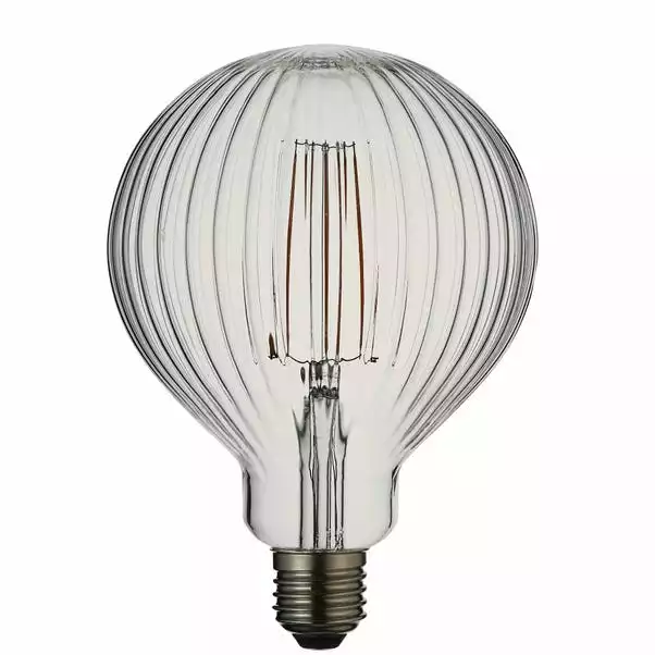 The perfect light accessory, this clear ribbed glass energy saving lamp has subtle light output, without compromising on style for that perfect authentic filament light effect. The perfect addition to exposed light designs for today’s stylish homes, creating less glare whilst still achieving that on trend bar, hotel look.