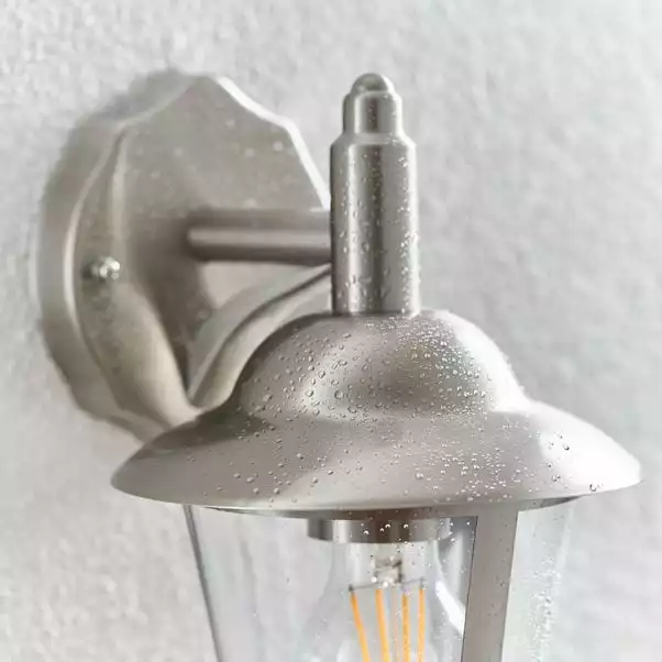 Boasting a modern take on a traditional style, the Klien outdoor wall light features a sturdy and weather resistant stainless steel and polycarbonate construction, complete with a clear vandal resistant diffuser for a stylish look. This light features an IP44 rating making it suitable for a wide range of outdoor spaces and is perfect for combining with other items in the range for a stylish, coordinated look.